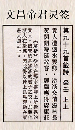 文昌帝君灵签第九十九签:癸壬上上
